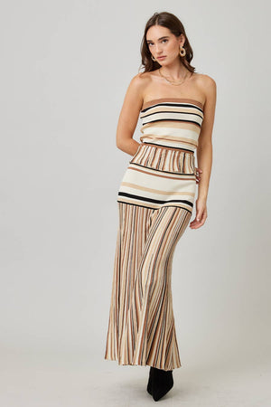 A must-have, this striped knit skirt features a lightweight fabric, maxi length, and a comfortable elastic waistband. SELF:60%POLYESTER,40%VISCOSE